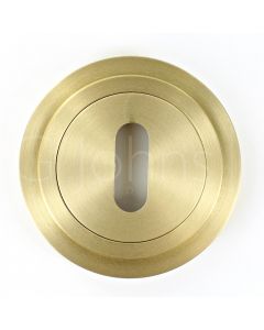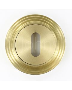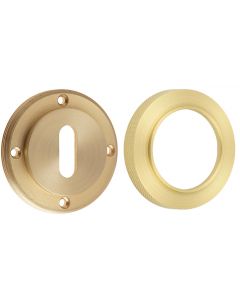 - Our range of satin brass escutcheons (key hole covers) for lever handles are designed to be used in conjunction with round rose and square rose lever handles.